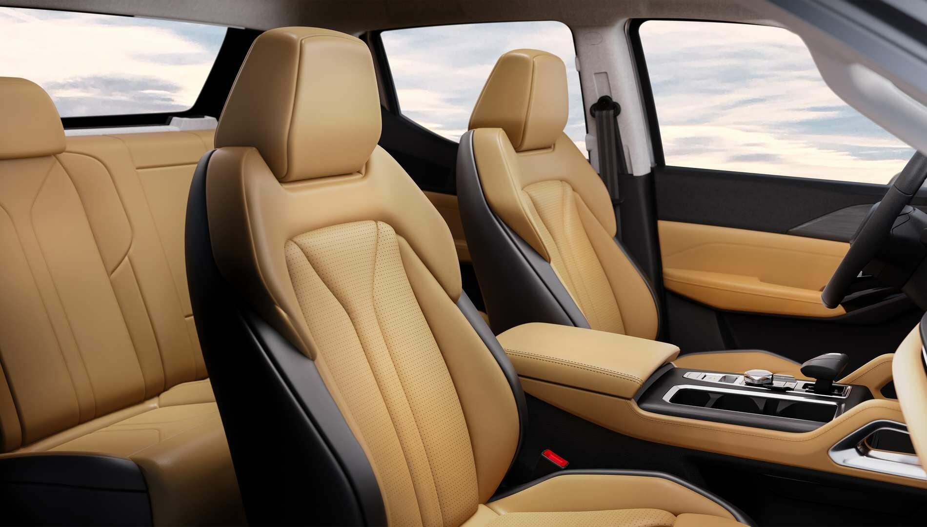 • Қатал сыртқы көрініс ішкі қатқылдықты білдірмейді: салондағы перфорацияланған эко-былғарыдан жасалған екі түсті біріктірілген орындық әрлеуімен сән-салтанат сезімін табасыз.